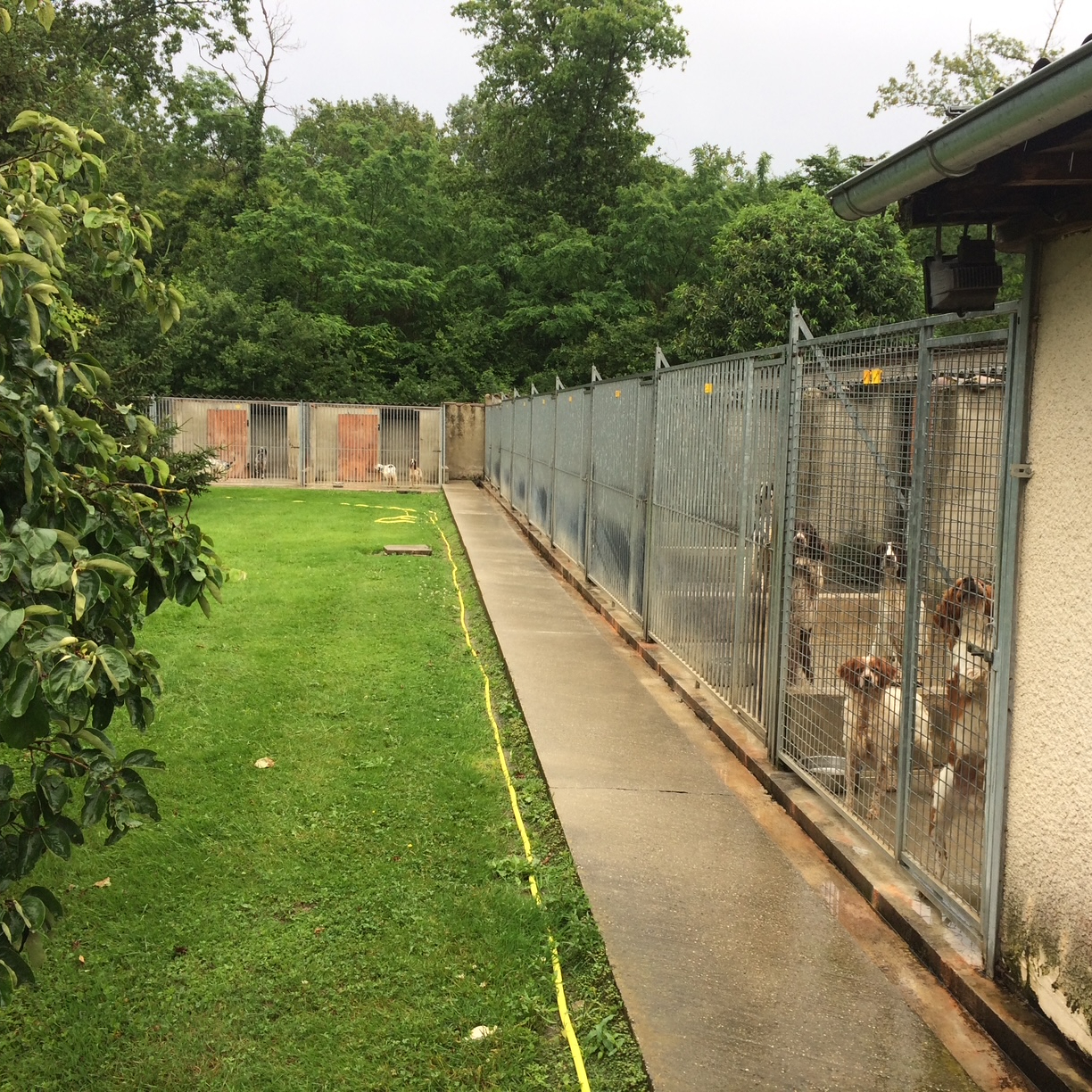 La pension canine, cadre calme et ombragé, box individuel chauffé si besoin, avec parc de détente et assistance vétérinaire.